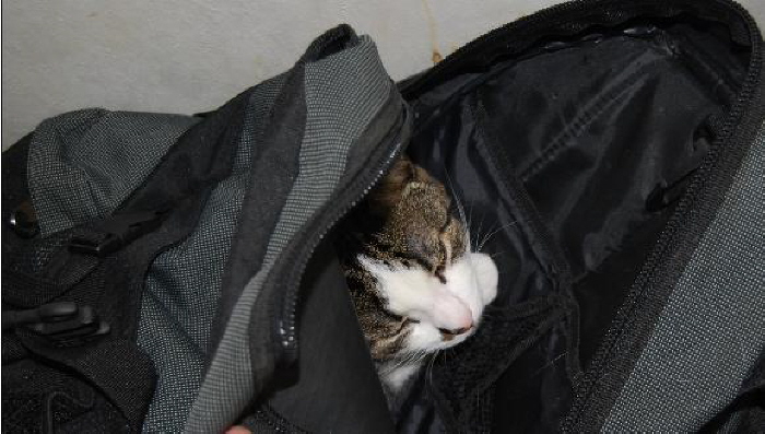 Katerli findet immer wieder ein neues Versteck. Das er sich im Rucksack versteckt hat ist mir erst aufgefallen als sich der Rucksack plötzlich auf meinem Rücken bewegte.